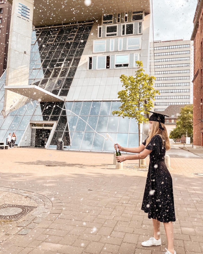 To celebrate four years of hard work, long hours, and numerous mental breakdowns (🤭😂), we popped some champagne in front of our uni building and said goodbye to the life we’ve known for the past years 🍾🥺👋🏼