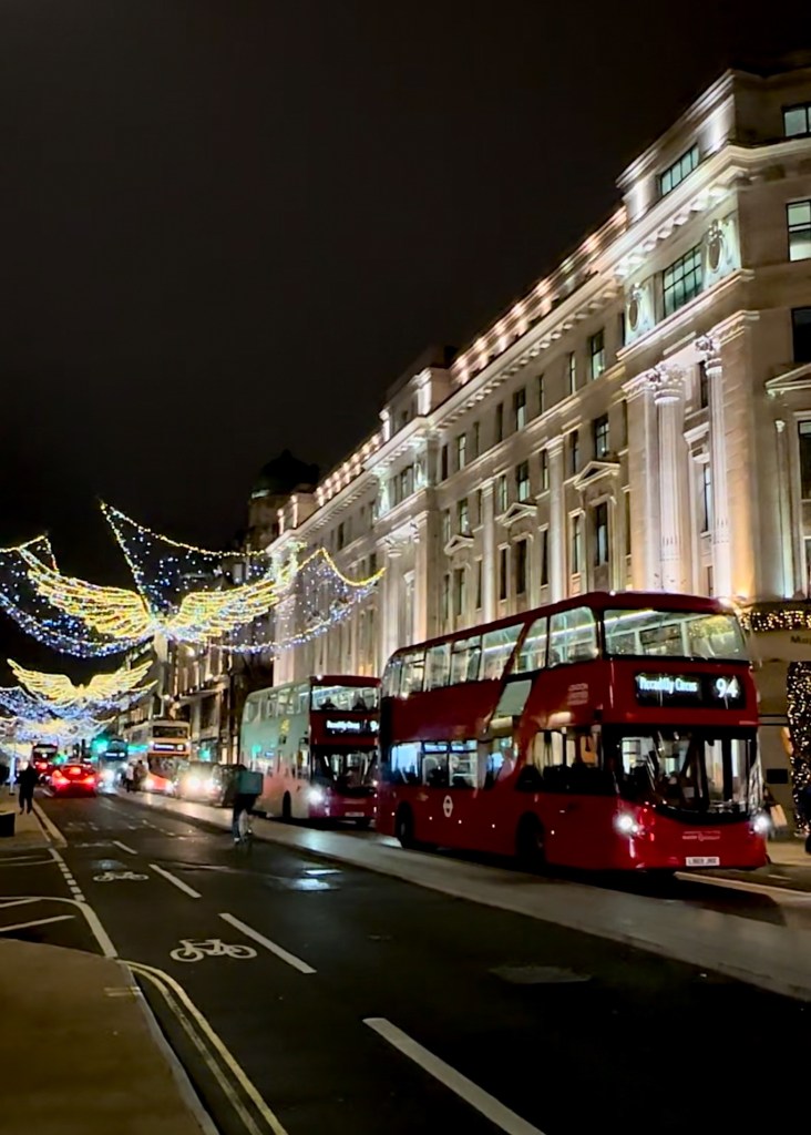 Fake snow flying through the crisp air on Bond Street, people drinking mulled wine at Trafalgar Square, and the angels glittering on Regent Street – as soon as the lights are switched on, so is the magic.