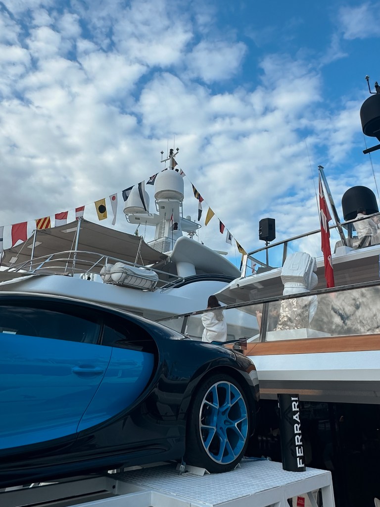 While I was planning to spend the day at a beach party with my friend, she called me up and invited me to join her on board of the Seven Sins, which became known as the Bugatti Yacht this year. Our host, Tom Claeren, organized this major event for the F1 weekend and to makee the location even more special, he lifted a Bugatti on board of the yacht – what else would you do, right?
