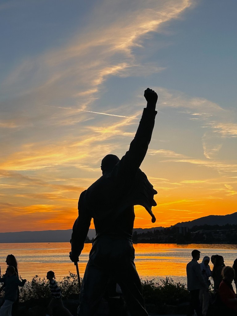 For the afternoon and evening, we drove into Montreux. The city is known to have been Freddie Mercury’s favorite place and creative sanctuary. This statue of him honores the special bond he had to this beautiful place. We unfortunately missed the famous Montreux Jazz Festival by just a few weeks, but we still got lucky with the most amazing sunset. A perfect way to end the day. 😊